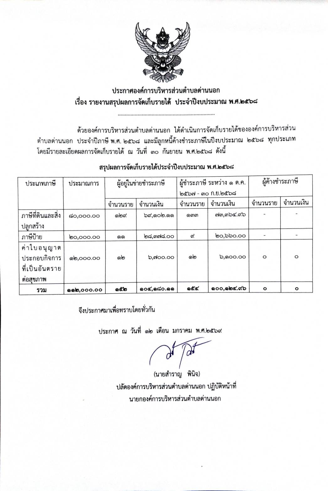 รายงานสรุปผลการจัดเก็บรายได้ ประจำปีงบประมาณ พ.ศ.2568 |