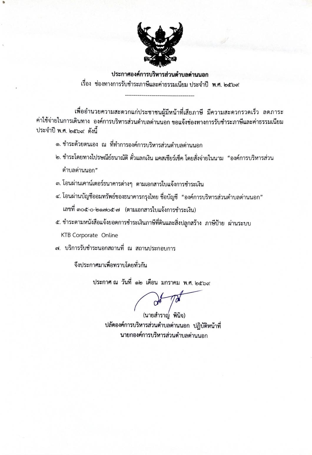 ช่องทางการรับชำระภาษีและค่าธรรมเนียม ประจำปี พ.ศ. 2569 |